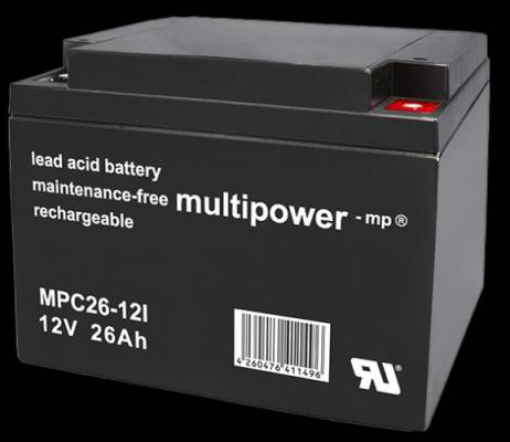 Nennspannung: 12V Nennkapazität: 26Ah Anschlußart: M5 Abmessungen L x B x H (mm) 166 x 175 x 125mm Gewicht ca.9300g